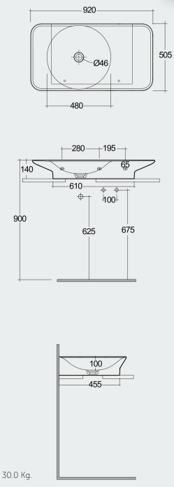Rak Valet umývadlo 92x50,5 cm. Bez otvoru pre batériu a odkladacou plochou vpravo bez prepadového otvoru. Z keramického črepu prevedenie bielá matná. Umývadlo samonostné montáž na stenu, možnosť inštalácie na dosku, zadná stena neglazovaná.