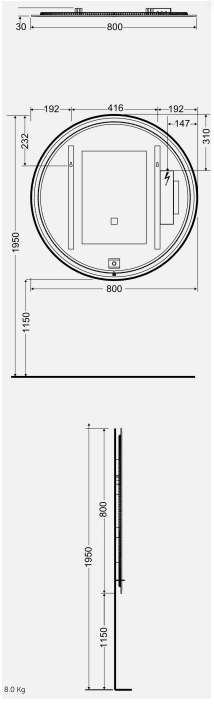 Zrkadlo kruhové ø80, s osvetlením so priestoru a s ambientým podsvietením.
