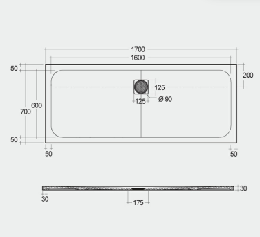 Sprchová vanička Feeling z materiálu RAKSolid a špeciálnou povrchovou reliefnou vrstvou GelCoat.  Vzhľad povrchu imituje hrubo otesaný kámeň. Protišmik treida C podľa normi EN 51097. Dodávané vrátene designového krytuz nerezovej oceli.
