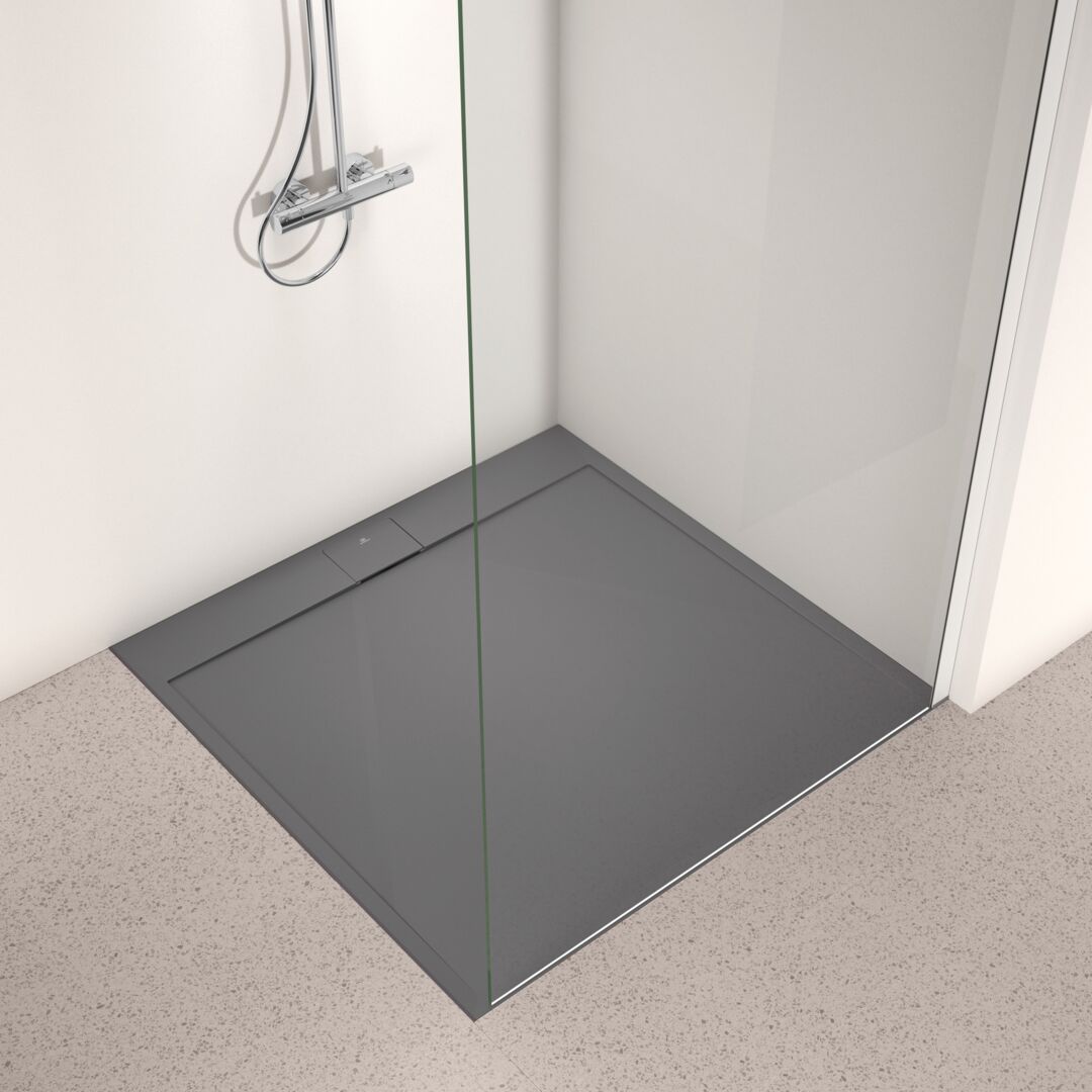 Sprchová vanička I.LIFE Ultra Flat S z materiálu Ideal Solid s rozmerom 120x120 cm. Špeciálna povrchová úprava GelCoat - farba betónovo sivá s textúrou matného kameňa. Výška sprchovej vaničky 3 cm. Protišmyk trieda C podľa normi EN 51097. Dodávané vrátene designového krytu.