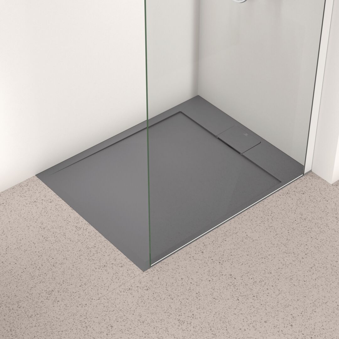 Sprchová vanička I.LIFE Ultra Flat S z materiálu Ideal Solid s rozmerom 100x80 cm. Obdĺžnik - odpad na kratšej strane. Špeciálna povrchová úprava GelCoat - farba betónovo sivá s textúrou matného kameňa. Výška sprchovej vaničky 3 cm. Protišmyk trieda C podľa normi EN 51097. Dodávané vrátene designového krytu.