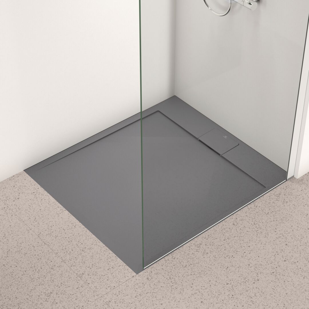 Sprchová vanička I.LIFE Ultra Flat S z materiálu Ideal Solid s rozmerom 100x90 cm. Obdĺžnik - odpad na kratšej strane. Špeciálna povrchová úprava GelCoat - farba betónovo sivá s textúrou matného kameňa. Výška sprchovej vaničky 3 cm. Protišmyk trieda C podľa normi EN 51097. Dodávané vrátene designového krytu.