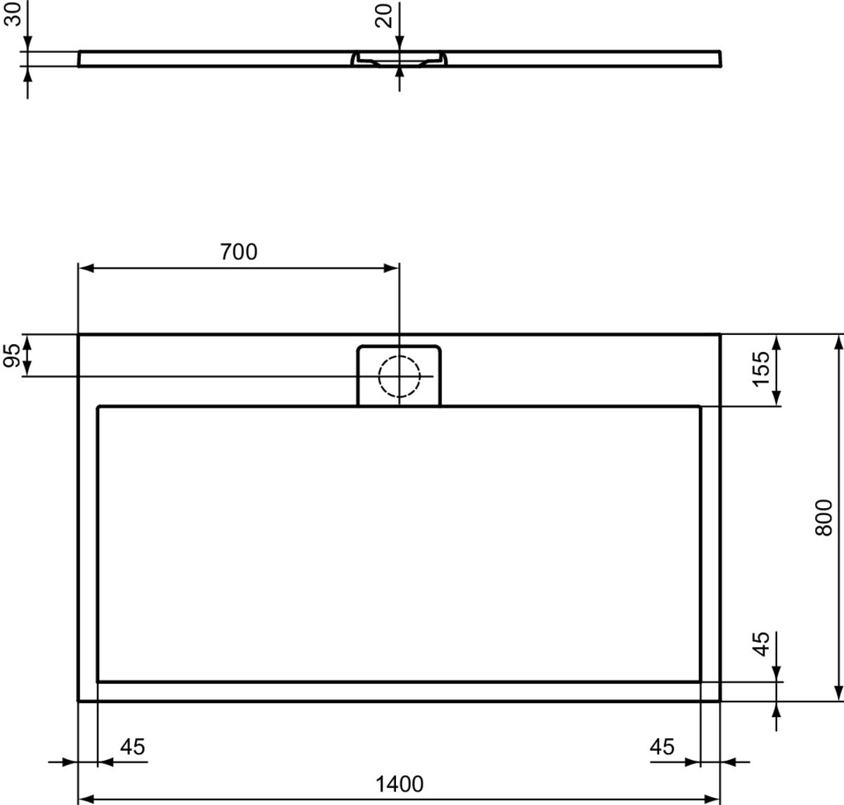 Sprchová vanička I.LIFE Ultra Flat S z materiálu Ideal Solid s rozmerom 140x80 cm. Obdĺžnik - odpad na dlhšej strane. Špeciálna povrchová úprava GelCoat - farba biela s textúrou matného kameňa. Výška sprchovej vaničky 3 cm. Protišmyk trieda C podľa normi EN 51097. Dodávané vrátene designového krytu.