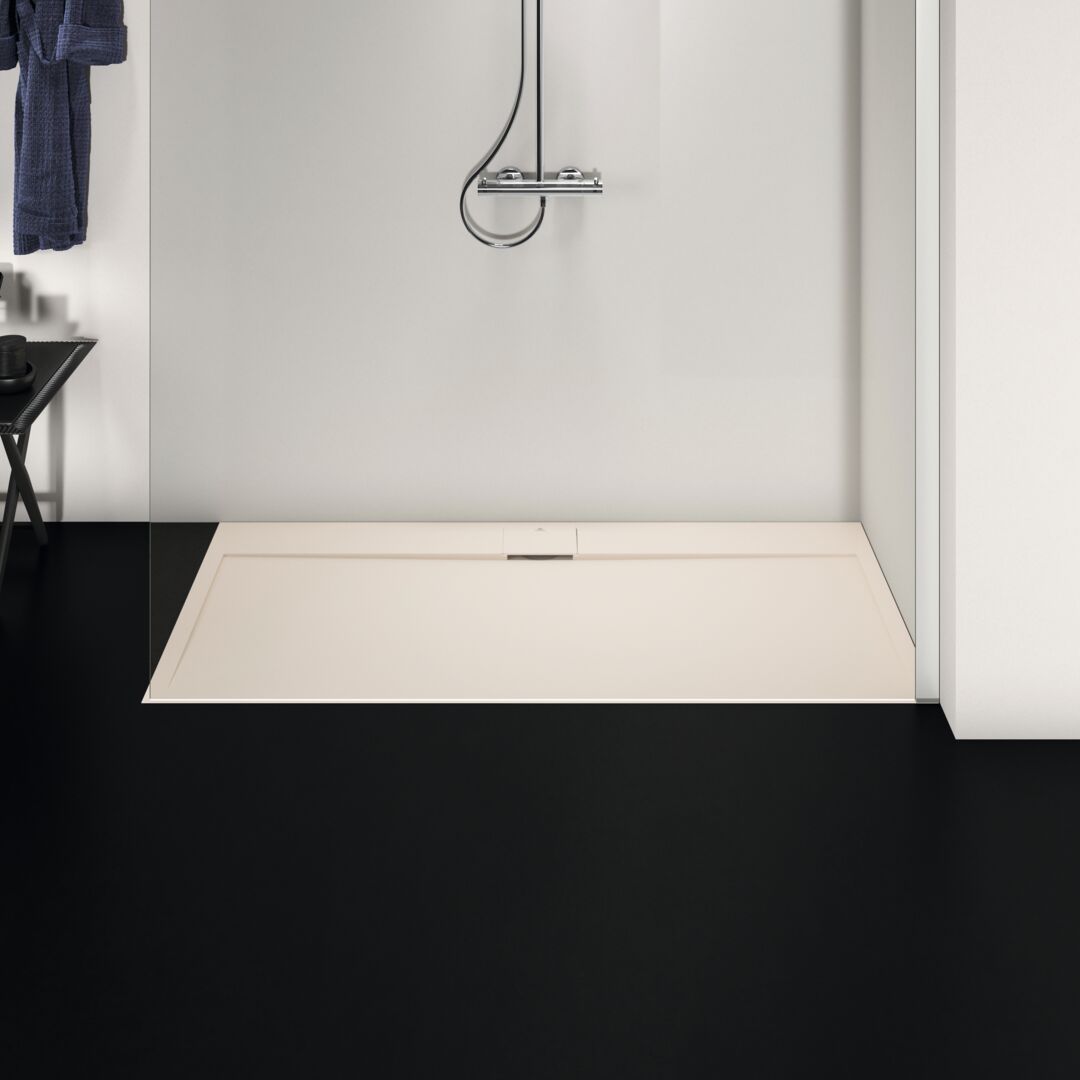 Sprchová vanička I.LIFE Ultra Flat S z materiálu Ideal Solid s rozmerom 160x80 cm. Obdĺžnik - odpad na dlhšej strane. Špeciálna povrchová úprava GelCoat - farba piesková s textúrou matného kameňa. Výška sprchovej vaničky 3 cm. Protišmyk trieda C podľa normi EN 51097. Dodávané vrátene designového krytu.