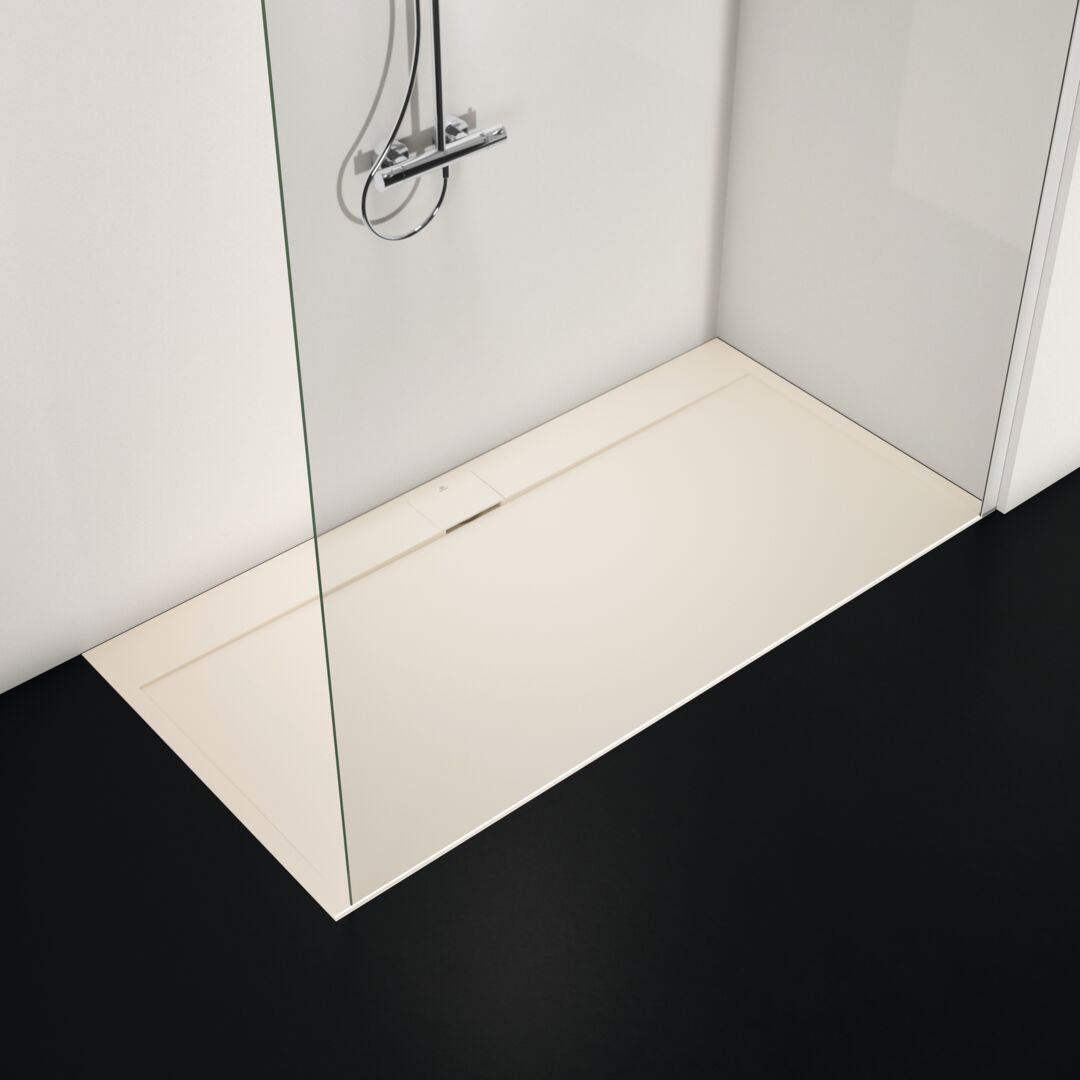 Sprchová vanička I.LIFE Ultra Flat S z materiálu Ideal Solid s rozmerom 180x90 cm. Obdĺžnik - odpad na dlhšej strane. Špeciálna povrchová úprava GelCoat - farba piesková s textúrou matného kameňa. Výška sprchovej vaničky 3 cm. Protišmyk trieda C podľa normi EN 51097. Dodávané vrátene designového krytu.