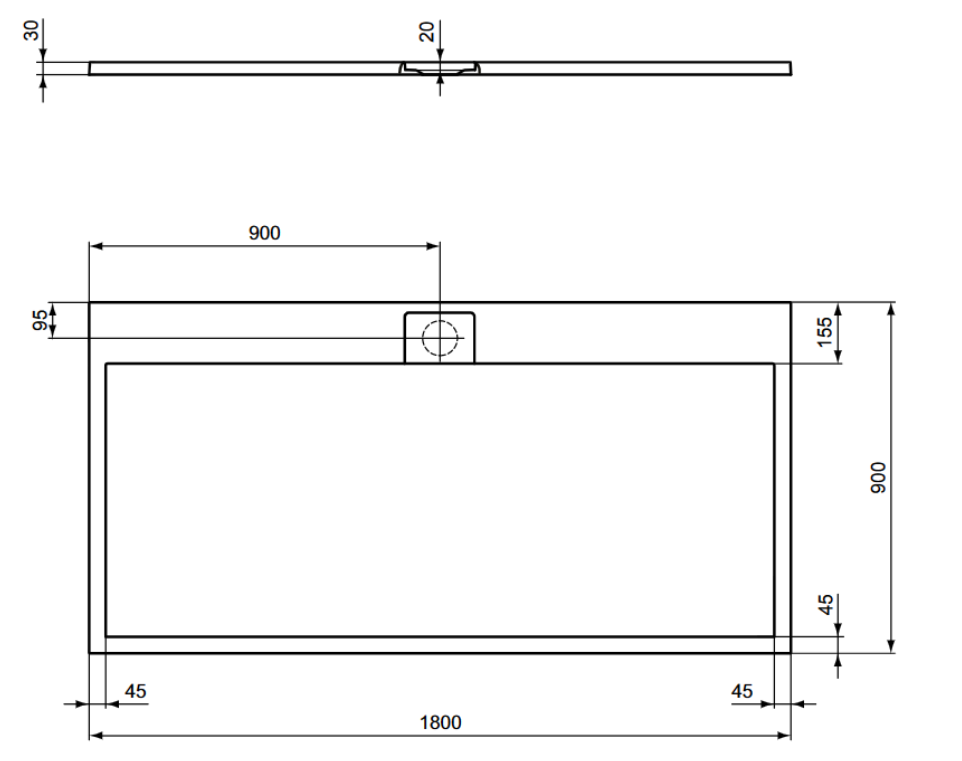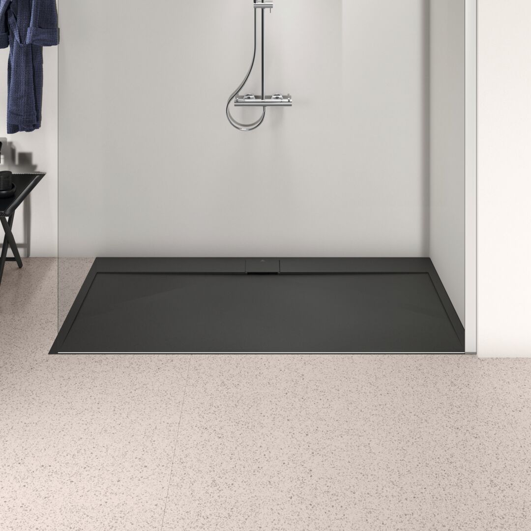 Sprchová vanička I.LIFE Ultra Flat S z materiálu Ideal Solid s rozmerom 180x90 cm. Obdĺžnik - odpad na dlhšej strane. Špeciálna povrchová úprava GelCoat - farba čierna s textúrou matného kameňa. Výška sprchovej vaničky 3 cm. Protišmyk trieda C podľa normi EN 51097. Dodávané vrátene designového krytu.