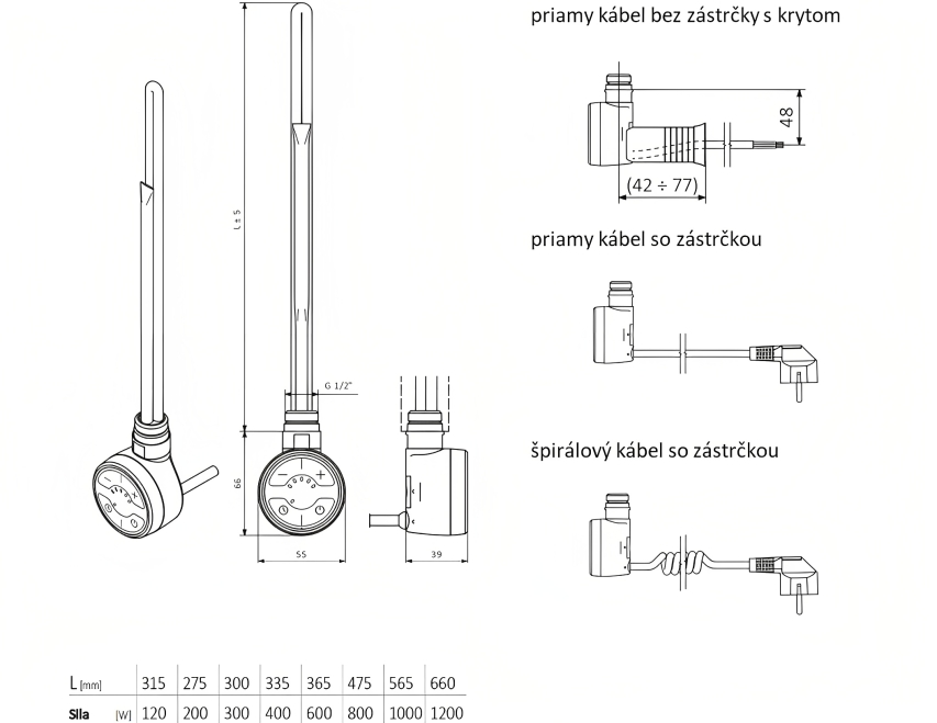 Pri objednávke uviesť do poznámky výkon vykurovacej tyče - 120W, 200W, 300W, 400W, 600W, 800W, 1000W, 1200W.