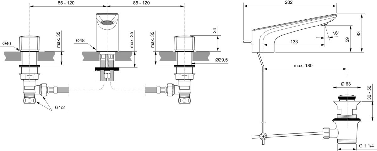 HL Umývadlový/bidetový zápachový uzáver (polsifón), HL135/40