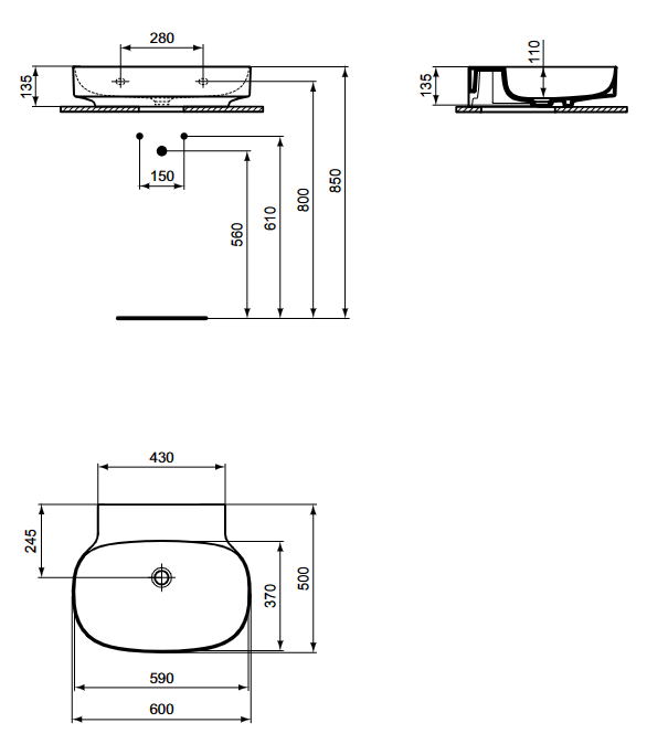 Linda-X umývadlo nástenné 60x50 cm, bez otvoru pre batériu. Glazovaná spodná hrana - nie je vhodné pre inštaláciu na dosku. Bez prepadu. Inštalácia iba so skrytým systémom prepadu IdealFlow, alebo neuzatvarateľnou odtokovou garnitúrou. potrebné doobjednať zvlášť.