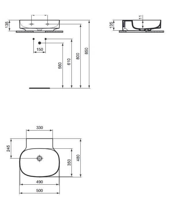Linda-X umývadlo nástenné 50x48 cm, bez otvoru pre batériu. Glazovaná spodná hrana - nie je vhodné pre inštaláciu na dosku. Bez prepadu. Inštalácia iba so skrytým systémom prepadu IdealFlow, alebo neuzatvarateľnou odtokovou garnitúrou. potrebné doobjednať zvlášť.