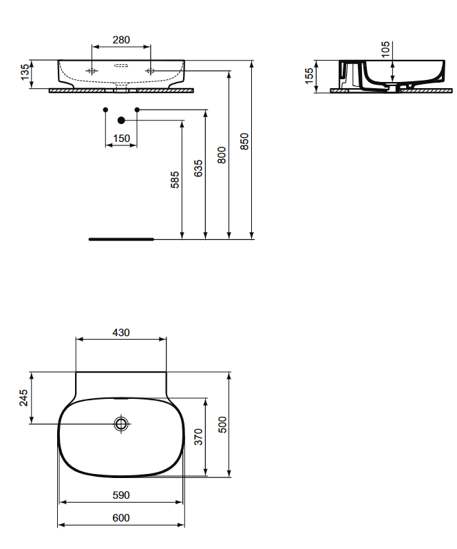 Linda-X umývadlo nástenné 60x50 cm bez otvoru pre batériu a prepadovým otvorom. Glazovaná spodná hrana - nie je vhodné pre inštaláciu na dosku. S prepadom. Inštalácia iba so skrytým systémom prepadu IdealFlow, alebo neuzatvarateľnou odtokovou garnitúrou. potrebné doobjednať zvlášť.