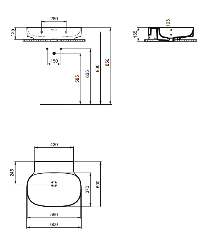 Linda-X umývadlo nástenné 60x50 cm bez otvoru pre batériu a prepadovým otvorom. Brúsená spodná hrana - vhodné pre inštaláciu na dosku. Inštalácia iba so skrytým systémom prepadu IdealFlow, alebo neuzatvarateľnou odtokovou garnitúrou. potrebné doobjednať zvlášť.