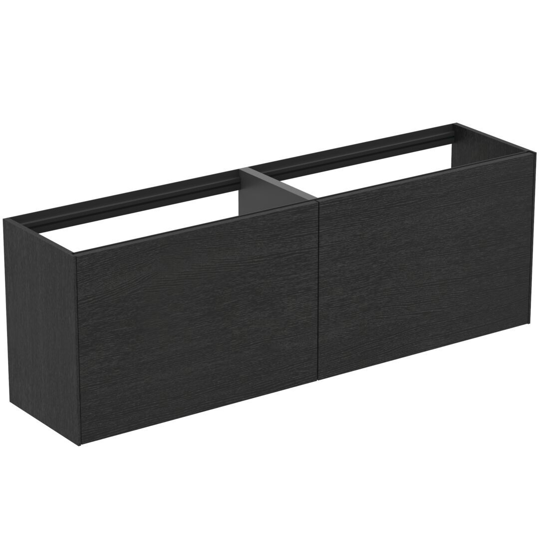 Conca umývadlová skrinka 160 cm farba Dub Dymový drevená dýha, s krátkou šírkou 37 cm. 2xvonkajšie zásuvky a 2x vnútorné zásuvky. Bez hornej dosky. Kovanie na zásuvkách má kombinované funkcie Push-to-open a Soft-close. Vnútor skrinky antracitový povrch odpovedajúci farbe zásuvky. Kompatibilné s umývadlami Conca -brúsená spodná hrana.
