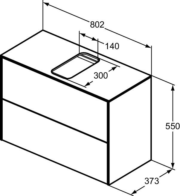 Conca umývadlová skrinka 80 cm farba Matný Antracit lakovaný, s krátkou šírkou 37 cm. 2x vonkajšia zásuvka . Horná doská s výrezom pre umývadla Conca a Extra s brúsenou spodnou hranou.  Kovania na zásuvkách má kombinované funkcie Push-to-open a Soft-close. Vnútor skrinky antracitový povrch odpovedajúci farbe zásuvky. Kompatibilné s umývadlami Conca -brúsená spodná hrana.