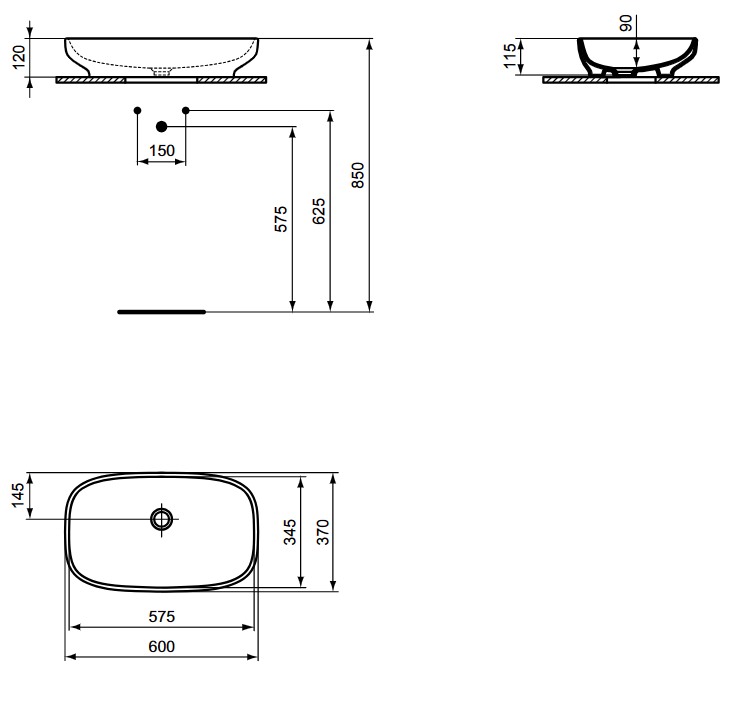 I.LIFE B Umývadlo na dosku 60x37 cm, T508701