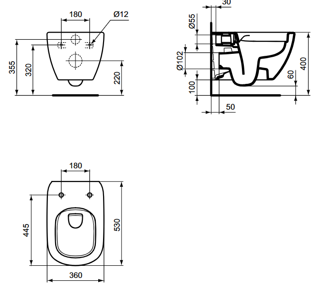 TESI RimLS+ WC závesné 53x36 cm, T4932V1