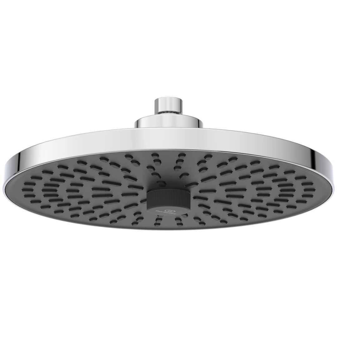 Alu+ hlavová sprcha, chróm, dažďová sprcha 26 cm priemer, 2-funkčná - SilkRain & Rain. EasyDial k prepínaniu prúdov otáčaním kolieska v strede. Silikónové trysky EasyClean, obmedzovač prietoku 12L/min.