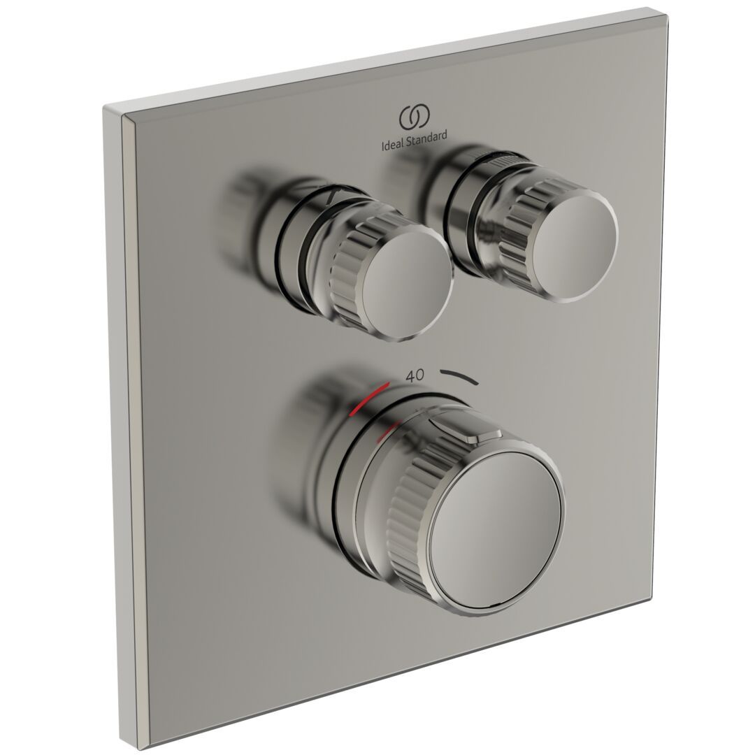 CeraTherm Navigo vaňová termostatická podomietková batéria diel 2, farba Ušľachtilá oceľ, pre konečnú montáž. So zariadením na zamedzenie spätného toku. Kovová hranatá rozeta 157x157 mm, kovová rukoväť s bezpečnostným tlačítkom proti obareniu s prednastavením na 40°C. Termostatická kartuša s rozťažiteľnou voskovou súčiastkou. Tesniací systém DICHT-Fix samostatne tesnenie každého otvoru pre optimálnu ochranu proti vlhkosti a vode. Integrovaný obmedzovač teplej vody. Ochrana proti hluku DIN 4109, trieda 1. 2x tlačítko. Tlačítkom ovládate otvorenie a prietok vody 2 funkcie s jedným ovládačom ( zapnuť vypnúť stisknutím a otočením nastavenie prietoku).