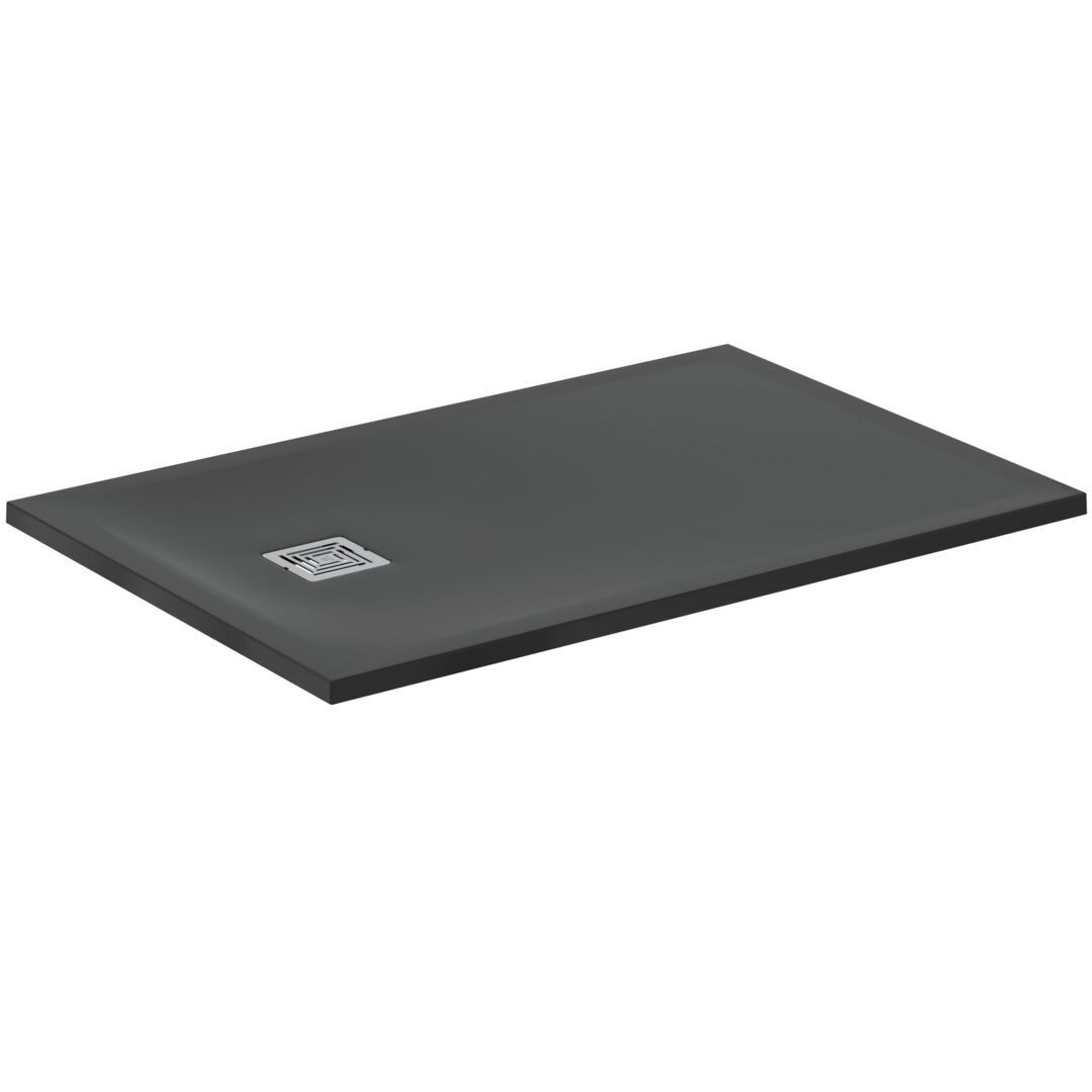 Sprchová vanička UltraFlat S + z materiálu IdealSolid farba čierna a špeciálnou povrchovou reliefnou vrstvou GelCoat.  Vzhľad povrchu imituje hrubo otesaný kámeň. Protišmyk trieda C podľa normi EN 51097. Dodávané vrátene designového krytu z nerezovej oceli.