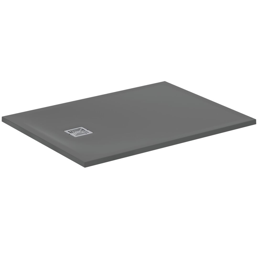 Sprchová vanička UltraFlat S + z materiálu IdealSolid farba betónovo sivá a špeciálnou povrchovou reliefnou vrstvou GelCoat.  Vzhľad povrchu imituje hrubo otesaný kámeň. Protišmyk trieda C podľa normi EN 51097. Dodávané vrátene designového krytu z nerezovej oceli.