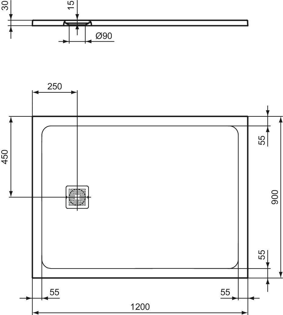 UltraFlat S + 120x90x3 cm Sprchová vanička z IdealSolid, T5595FS