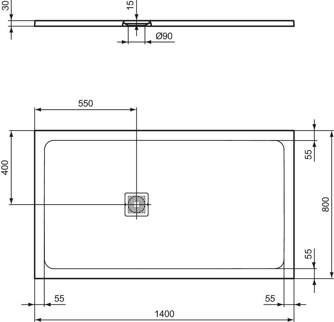 UltraFlat S + 140x80x3 cm Sprchová vanička z IdealSolid, T5599FR