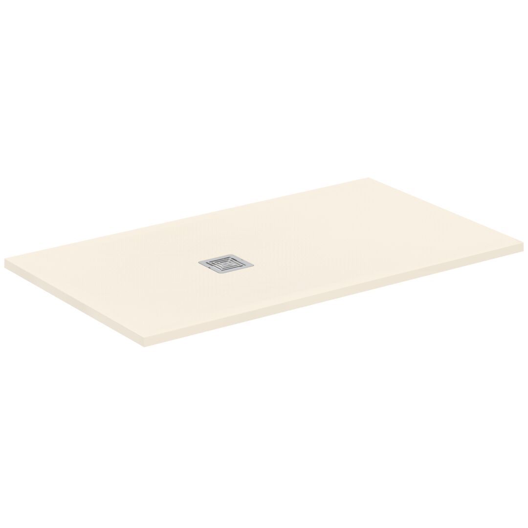 Sprchová vanička UltraFlat S + z materiálu IdealSolid farba piesková a špeciálnou povrchovou reliefnou vrstvou GelCoat. Vzhľad povrchu imituje hrubo otesaný kámeň. Protišmyk trieda C podľa normi EN 51097. Dodávané vrátene designového krytu z nerezovej oceli.
