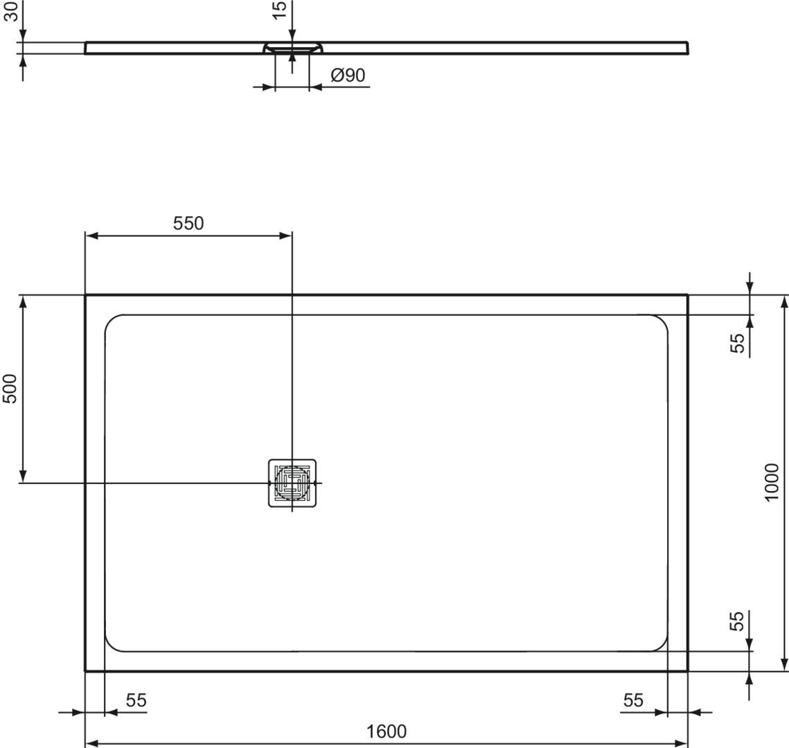 UltraFlat S + 160x90x3 cm Sprchová vanička z IdealSolid, T5601FR