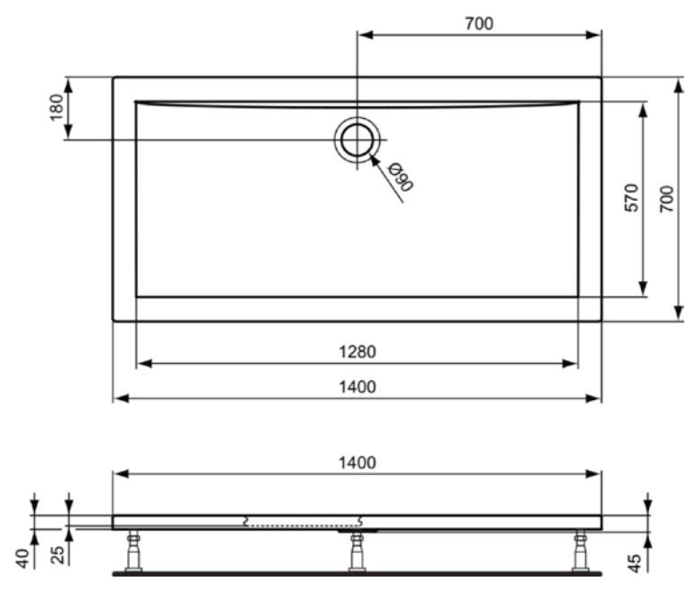 Ultra Light obdĺžniková sprchová vanička zo sanitárneho akrylátu. Vyrobené podľa DIN 14527. Vonkajší plášť vystužený skleneným vláknom. Spevnený rám a dno vaničky. Odpad Ø 90 mm. Montáž - nohy ku sprchovej vaničke a MEPA set.
