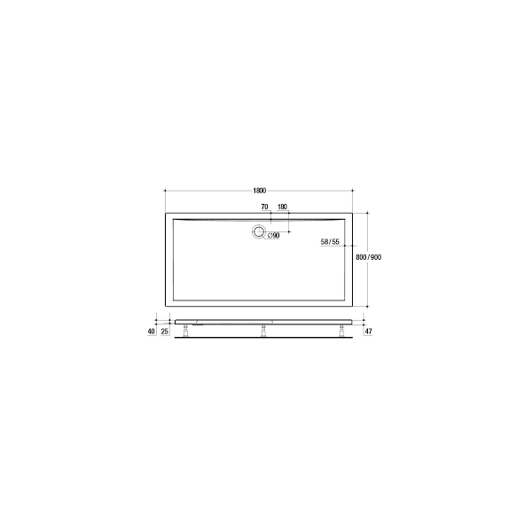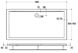 Ultra Light obdĺžniková sprchová vanička zo sanitárneho akrylátu. Vyrobené podľa DIN 14527. Vonkajší plášť vystužený skleneným vláknom. Spevnený rám a dno vaničky. Odpad Ø 90 mm. Montáž - nohy ku sprchovej vaničke a MEPA set.