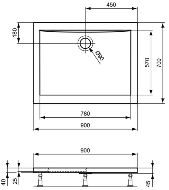 Ultra Light obdĺžniková sprchová vanička zo sanitárneho akrylátu. Vyrobené podľa DIN 14527. Vonkajší plášť vystužený skleneným vláknom. Spevnený rám a dno vaničky. Odpad Ø 90 mm. Montáž - nohy ku sprchovej vaničke a MEPA set.