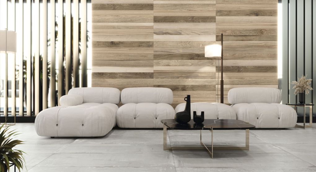 Villewood - nový návrh keramického obkladu vo formáte 60x120 cm inšpirovaný drevom. Obnovuje efekt drevených lamiel s jedinečným pocitom heterogenity, ktorý mu dodáva prirodzenejší a realistickejší vzhľad. Všetka esencia dreva a výkon tej najlepšej keramiky.